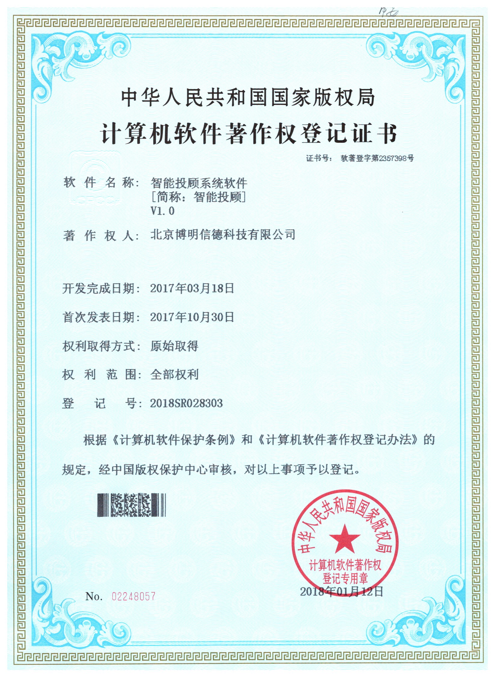 北京博明信德科技有限公司智能投顾系统获得著作权